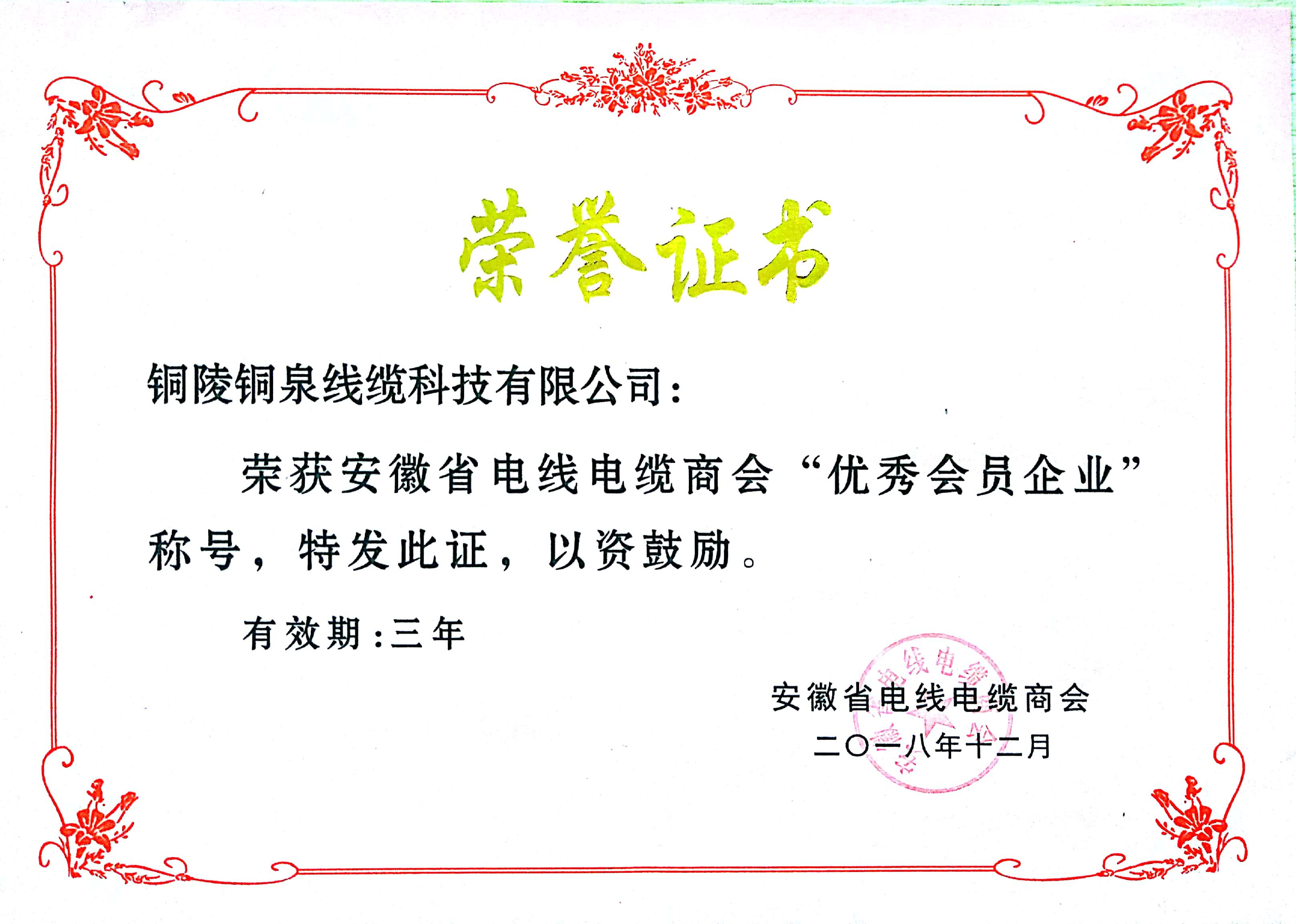 安徽省電線電纜商會優(yōu)秀會員企業(yè)
