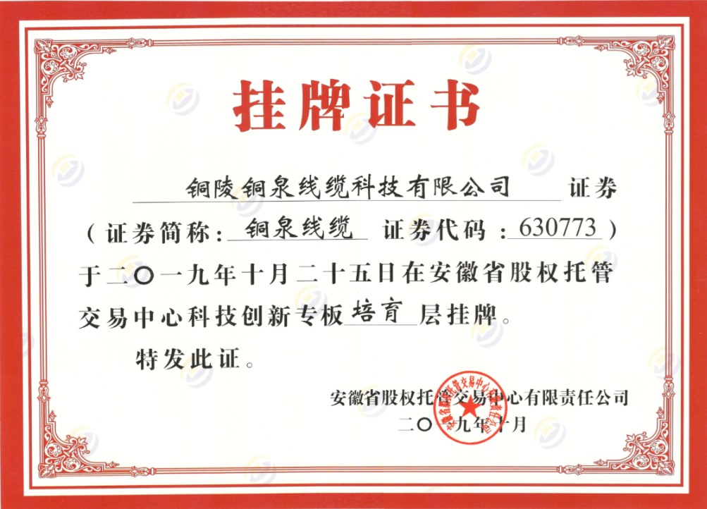 新專板掛牌證書