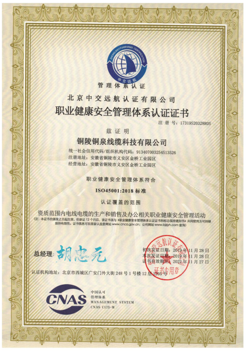 職業(yè)健康安全管理體系認(rèn)證證書(shū)