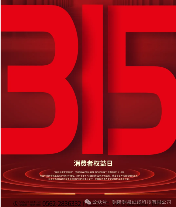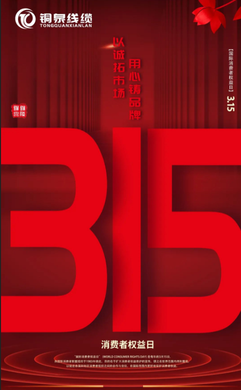 一年一度的315國際消費者權(quán)益日如期而至,今年,中國消費者協(xié)會將315主題定為“激發(fā)消費活力”,旨在優(yōu)化消費環(huán)境,推動消費從疫后恢復(fù)轉(zhuǎn)向持續(xù)擴大。眼下,刺激消費、激發(fā)活力,是經(jīng)濟發(fā)展的關(guān)鍵一步,在此背景下,切實保證消費者合法權(quán)益變得愈發(fā)重要。銅泉線纜始終堅守品質(zhì),始終秉承“以誠拓市場,用心鑄品牌”的經(jīng)營理念,以匠心,贏誠信;以責(zé)任,筑未來。315維權(quán)日我們不僅僅是參與者,更是責(zé)任的踐行者。在這個特別的日子里我們的承諾不會缺席。